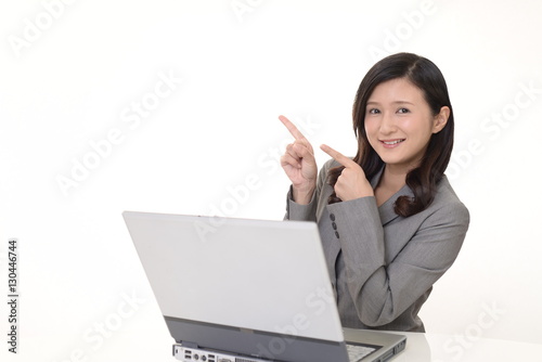 指示する笑顔のビジネスウーマン