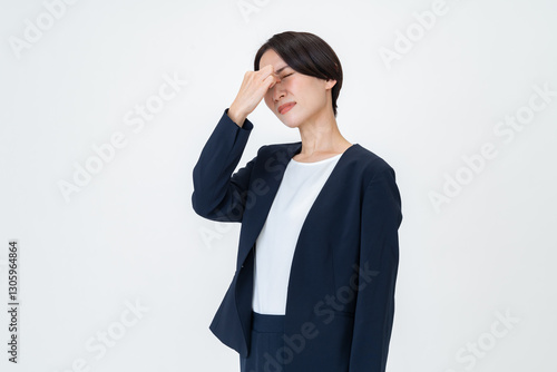 目頭を抑えるビジネスウーマン