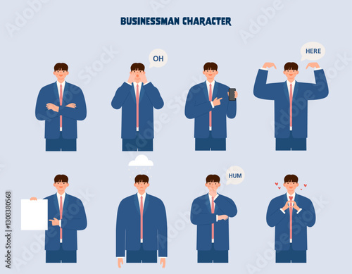 다양한 포즈와 제스처를 취한 비즈니스 맨 일러스트