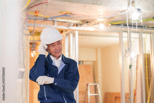 マンションのリフォーム現場で働く男性の大工