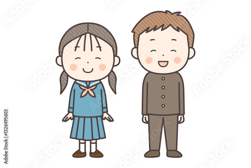にっこり笑顔の学生服の男の子と女の子の全身イラスト