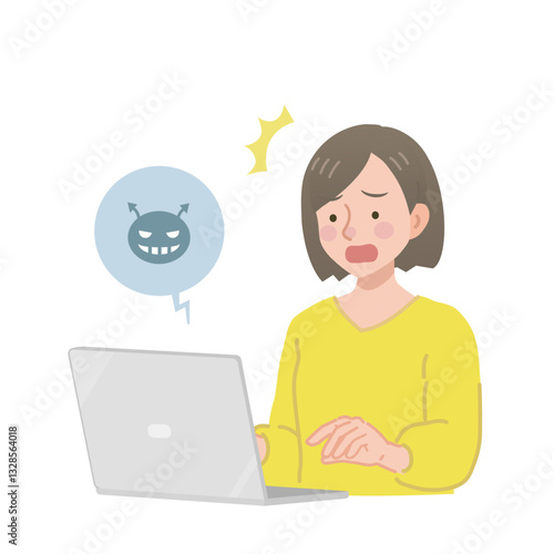 パソコンを見てショックを受ける女性