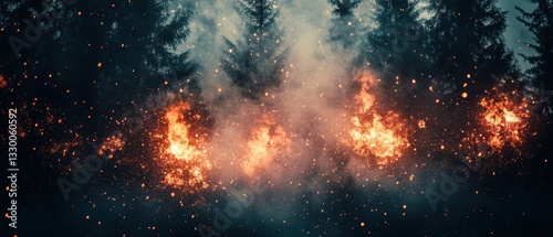 森の中で燃え広がる火災の厳しい光景とその影響を受ける自然の姿