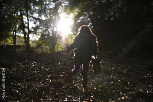 荷物を持って歩く女の子のシルエット