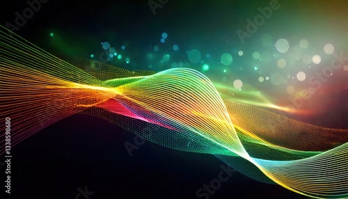 光の波, デジタルアート, カラフル, 抽象, 背景, フューチャリスティック, グラデーション, ネオンカラー, 光のエフェクト, 輝き, テクスチャー, ストリーム, 曲線, 動き, エネルギー, ダイナミック, サイバー, 青, 紫, 赤, 黄, 緑