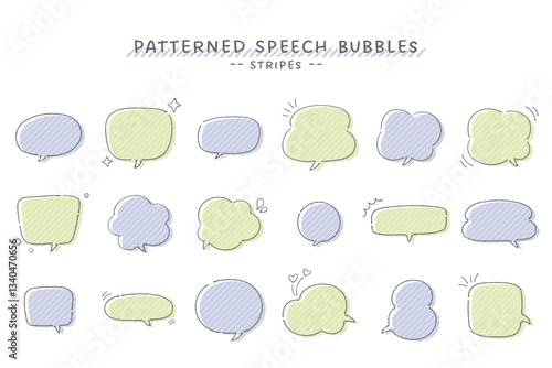 手描きのかわいい吹き出しセット。ペンで描いたラインとストライプ模様の塗り。