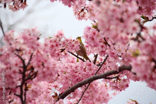 春の河津桜とメジロ