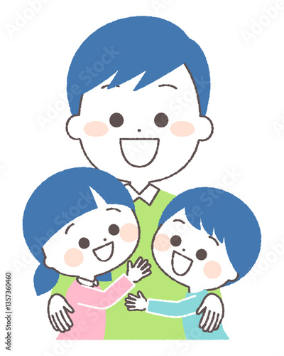 お父さんに抱きつく子供達 家族