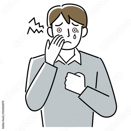 目が充血して困っている男性の上半身