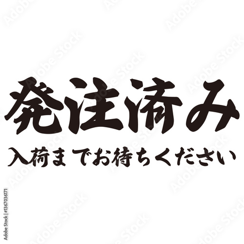 勢いがあり縁起よく力強く描いた手描きの水彩、筆文字の発注済み(入荷までお待ちください)という漢字のイラスト素材