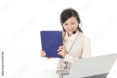 japanese, woman, people, operator, people, call center, customer service, business, work, office, sweet, pretty, young, adult, personal computer, notebook, cyberspace, smile, smile, headset, telemarketing, work, working girl, call, woman, corporation, shirt, lively, happy, happiness, light, health, model, beauty, girl, fun, expression, alone, asian, copy space, waist up, white background