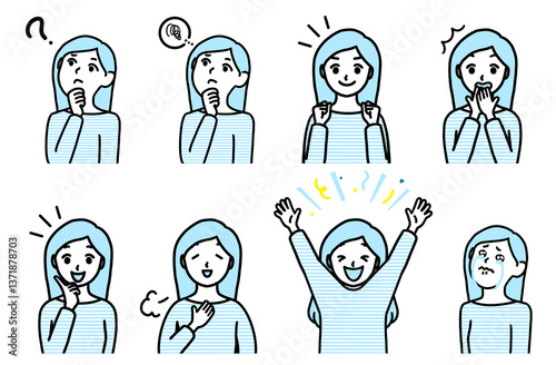 さまざまな表情の女性 ブルー系