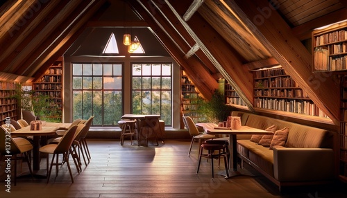 屋根裏の隠れ家カフェ|落ち着いた読書空間