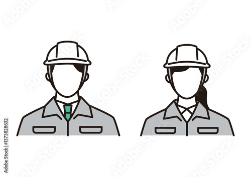 ヘルメットをかぶった作業服の男女