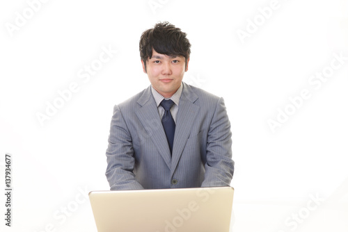 ノートパソコンで仕事中のビジネスマン