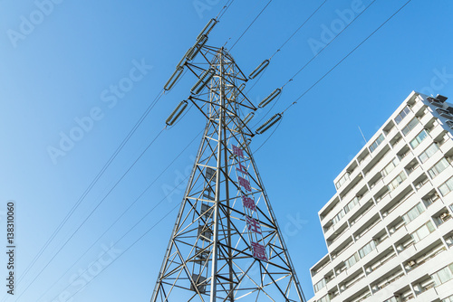 送電鉄塔と高層住宅