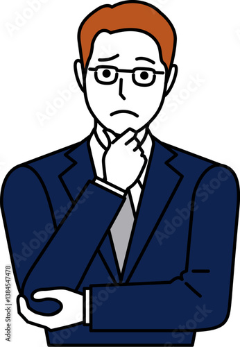 あごに手を当てて悩み顔のスーツの男性