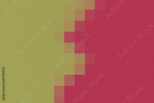 抽象背景:抹茶グリーンとディープピンクのブロック遷移と粒子テクスチャ