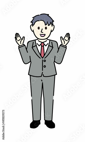 man, suit, people, circle, ok, illustration, business, employee, vector, smile, work, businessman, japanese, young, recruit, adult, office worker, manner, corporation, person, customer service, april, point, hand, client, office, idea, salaried employee, pose