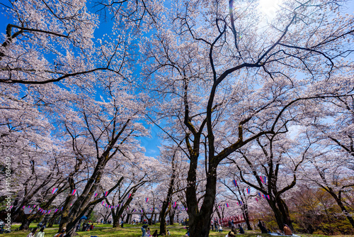 長野県 春日公園 桜満開の風景