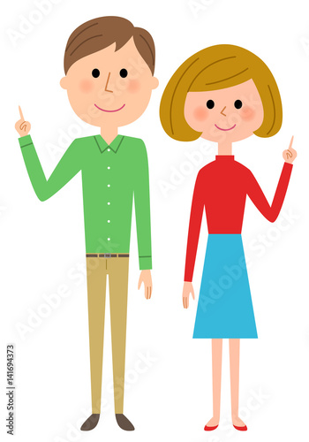 若いカップル 指をさす