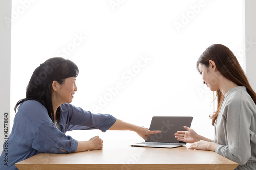 訪問営業をする女性、主婦