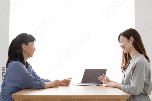 訪問営業をする女性、主婦