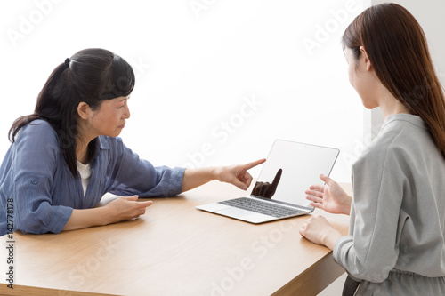 訪問営業をする女性、主婦、不満、値下げ、交渉