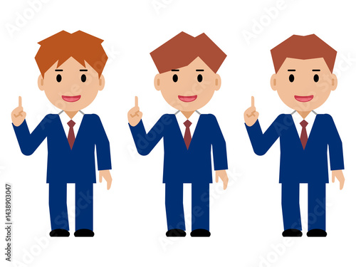 ナンバーワンポーズをする笑顔の紺色スーツの男性