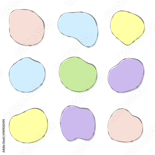 パステルカラーの抽象シェイプセット・柔らかくかわいい水玉風背景素材