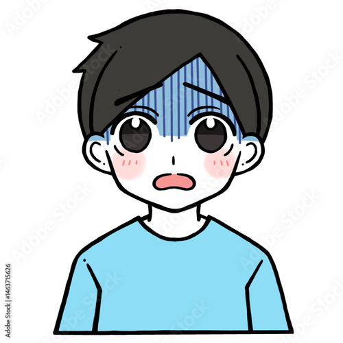呆れる青い顔の男性のイラスト