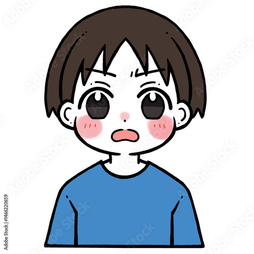 凄く怒った顔の男の子のイラスト