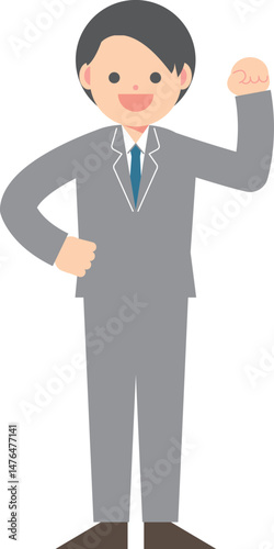 拳を掲げるスーツの男性