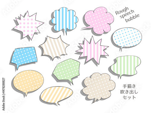 ドットとストライプのシンプルな手描きの吹き出しイラストセット