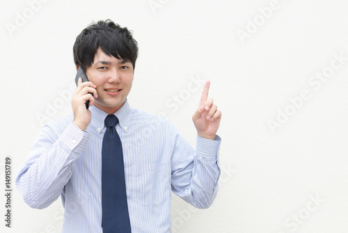 指示する笑顔のビジネスマン