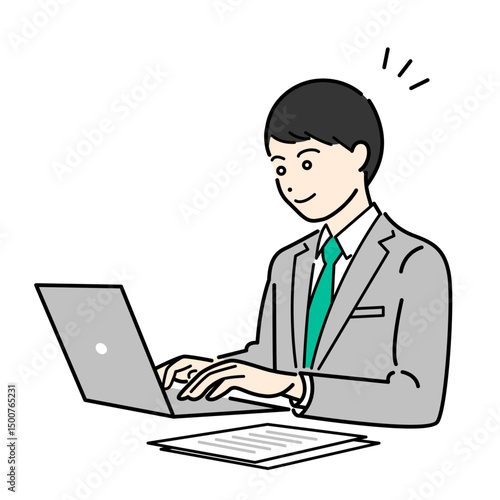 ビジネススーツを着た男性がパソコンを作業しているシンプルな上半身ベクターイラスト