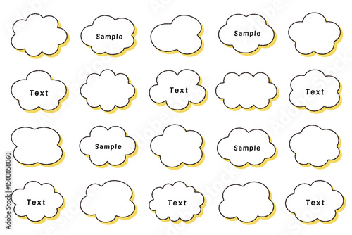 手描き風 雲 フレーム ペン画 影 飾り 装飾 素材 イラスト ベクター セット バリエーション