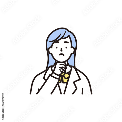 考えている女子高校生の上半身のシンプルなイラスト素材