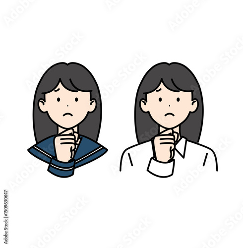 黒髪ロングの女子高生 セーラー ワイシャツ 困る
