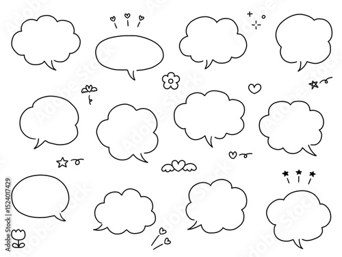 手書き風のシンプルな吹き出しのベクターイラストセット。ふきだし、フレーム、おしゃれ、落書き