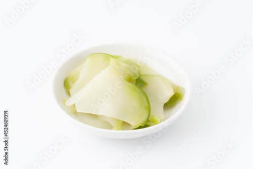 白背景に小皿に載せたザーサイの浅漬け