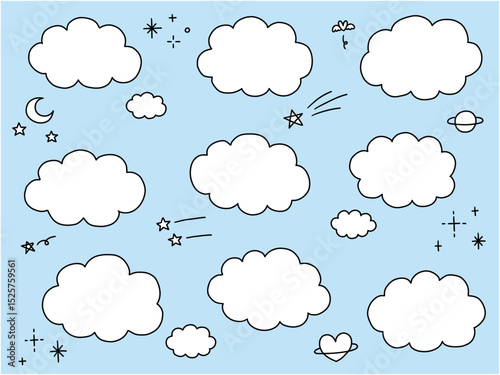 手書き風の雲のフレームのベクターイラストセット。枠、おしゃれ、落書き