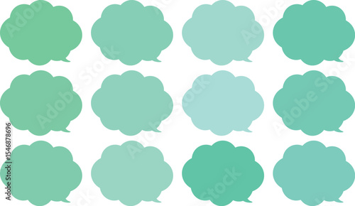 モコモコした、雲の形の緑の吹き出しセット。緑系で12色のセット。緑色のバリエーションがある。