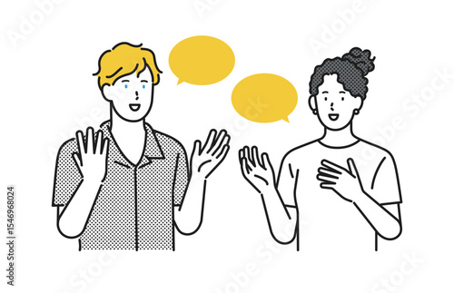イラスト素材:英語、外国語で会話する若い男女