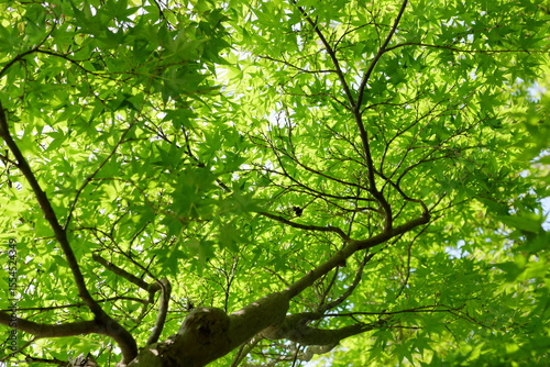 強い日差しをあびて透明感が綺麗な夏の青紅葉