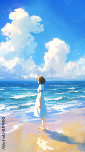 美しい四季。夏の海をイメージしたイラスト。