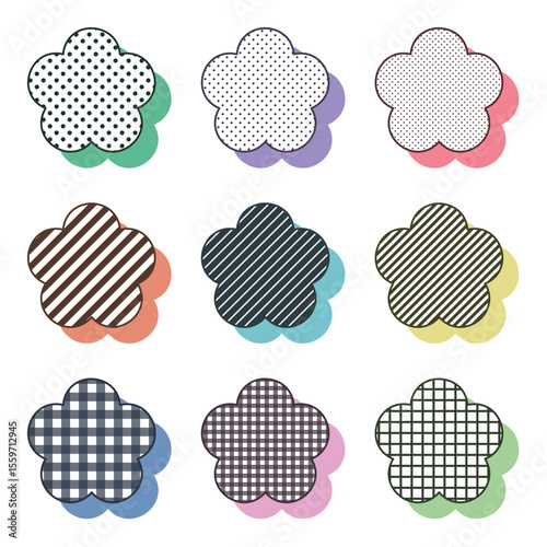 カラフルでかわいいメンフィスデザインの花びら素材集(影付き)