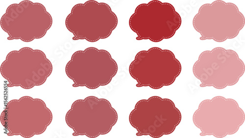 あずき色した12色の吹き出しセット。ふきだしの内側に白い破線がある。ポップでかわいいベクター画像