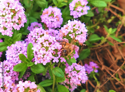 タイムの蜜を吸うミツバチ