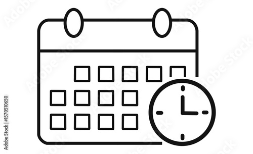 スケジュール管理を示すカレンダーと時計の線画アイコン
